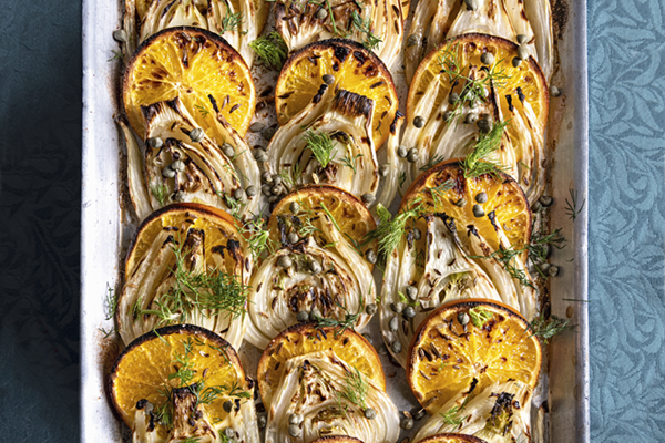 Backofen auf 220 °C Ober- und Unterhitze vorheizen. Fenchel putzen, das Grün zum Garnieren beiseitelegen. Knollen längs in 6 – 8 mm dicke Scheiben schneiden. Orangen waschen und in Scheiben schneiden. Fenchel- und Orangenscheiben abwechselnd in eine Auflaufform (ca. 15 x 25 cm) schichten. Orangensaft mit Olivenöl und Weißwein verrühren und darüber gießen. Mit Salz, Pfeffer und Fenchelsamen würzen. Im vorgeheizten Backofen etwa 25 Min. goldbraun gratinieren. Gratinierten Fenchel aus dem Backofen nehmen, mit Kapern und Fenchelgrün bestreuen und servieren.